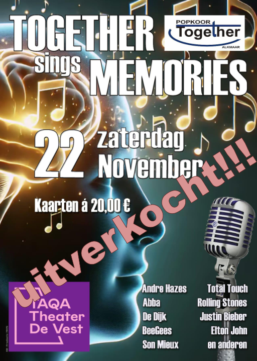 Met trots kunnen wij u mededelen dat wij na intensief repeteren een mooie show hebben gemaakt genaamd “Memories”. Deze gaan we uitvoeren op zaterdag 22 november 2025 in de Kleine Zaal van Theater De Vest.